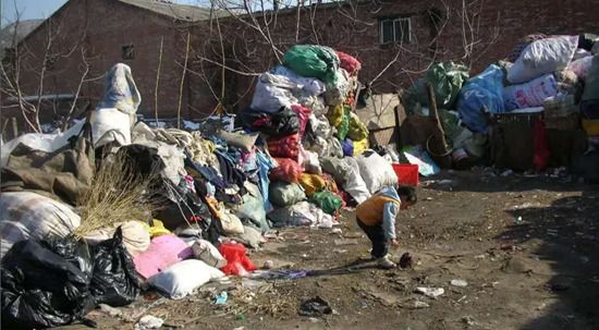 也有人把孩子带在身边,比如来自四川仪陇的小张。小张的儿子“在垃圾堆中长大”,不到1岁就坐在父亲收垃圾的三轮车里来回摇晃,大一点开始在院子里疯玩,“把垃圾场当作游乐园”,“台秤是他的秋千,货架是他的滑梯”。孩子性格开朗,长到3岁也没生过什么病。