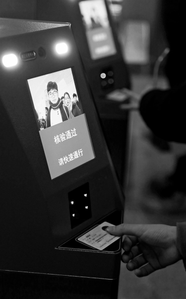 一名旅客凭借身份证“刷脸进站”