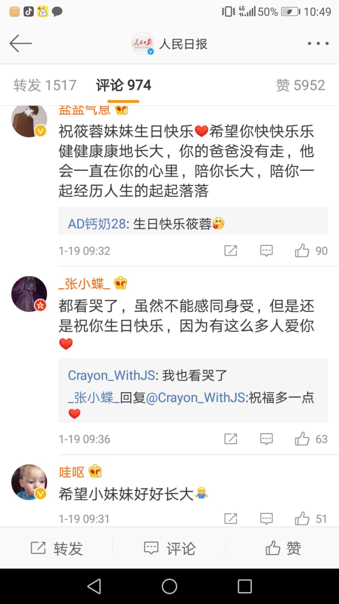 1月19日,人民日报官微发布了该消息,并号召全国警察叔叔阿姨为“小筱蓉”送上生日祝福,明星易烊千玺也为她拍了生日祝福视频。