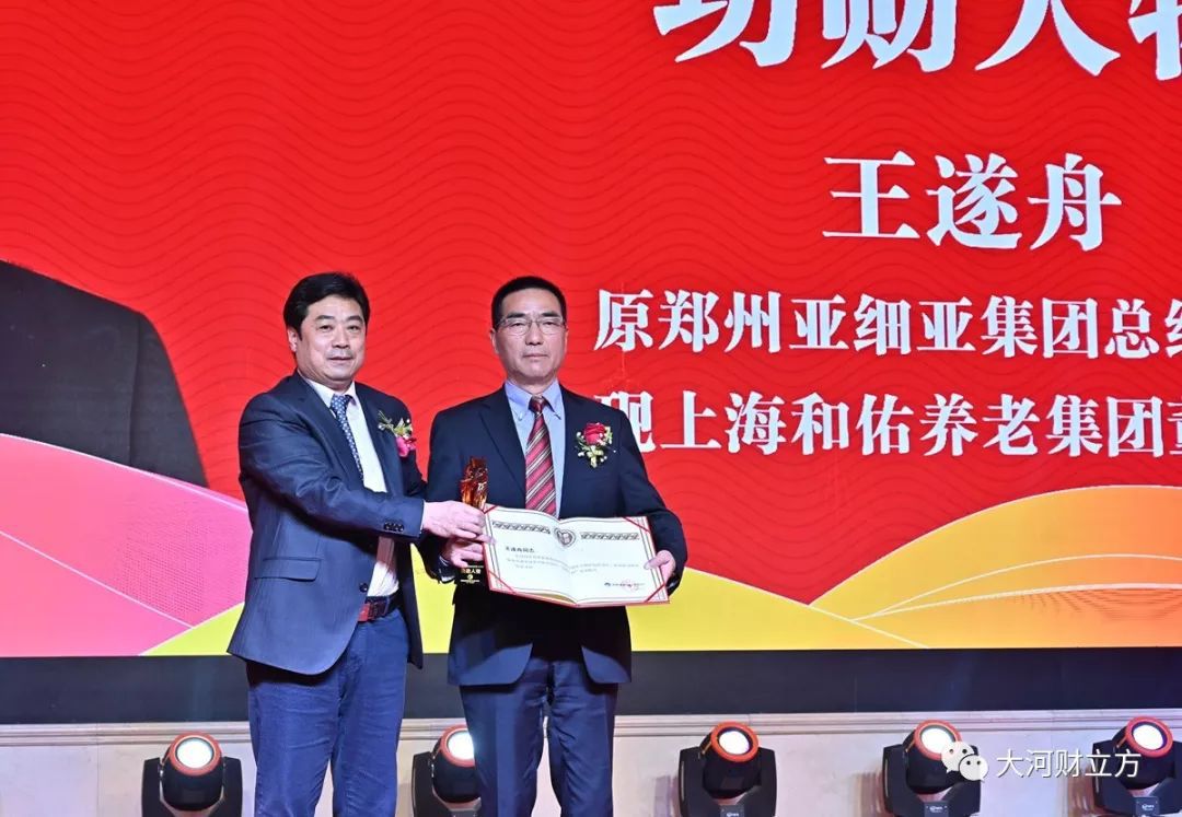 会上,王遂舟与丹尼斯董事长王任生、郑州市商务局原常务副局长阎铁成、郑州华联商厦有限责任公司董事长张淑云、欧亚集团郑州百货大楼股份有限公司董事长朱赵霞等9人被授予河南省商业流通业改革开放40周年功勋人物称号。颁奖词中有一段是这样说的: