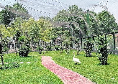 河南省野生动物救护中心院内,由于暂时收养和救治的动物较多,再加上绿树阴阴,这里看起来很像一个小型的动物园。不少鹰隼类、天鹅、灰鹭、猕猴、梅花鹿暂时生活在其中。但对于救护中心的鸟类来说,它们多了一个条件更好的居住地。