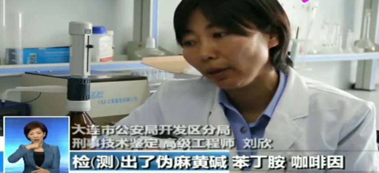 经过检测,药里含有伪麻黄碱、苯丁胺、咖啡因三种成分。