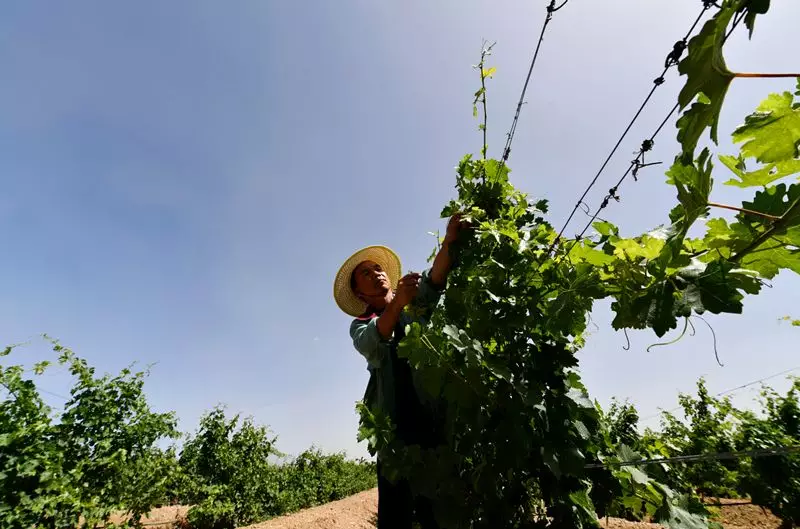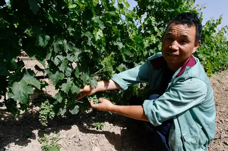 “老杨啊,这500亩葡萄树要定时浇水,做好引绑枝蔓。”正说着,杨成的老板贺兰神国际葡萄酒庄有限公司董事长陈德启走了过来。作为闽商代表,陈德启把这片茫茫的戈壁滩当成了“第二故乡”。