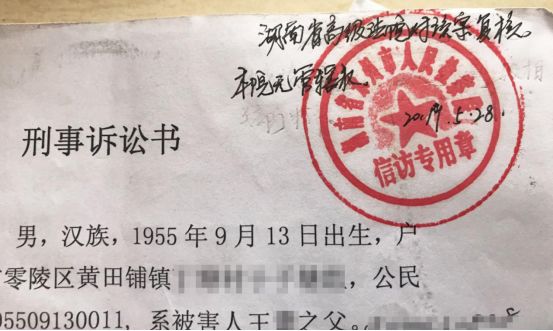 王华此后来到永州市人民检察院申诉科,申诉科对他说“快过年了,你过年后再来。”过年之后,申诉科工作人员收下材料,称“会安排人了解一下。”3个月后,申诉科向王华表示“还没搞清楚”,又过了一个月,申诉科书面回复表示“湖南省高级法院对该案复核,本院无管辖权。”