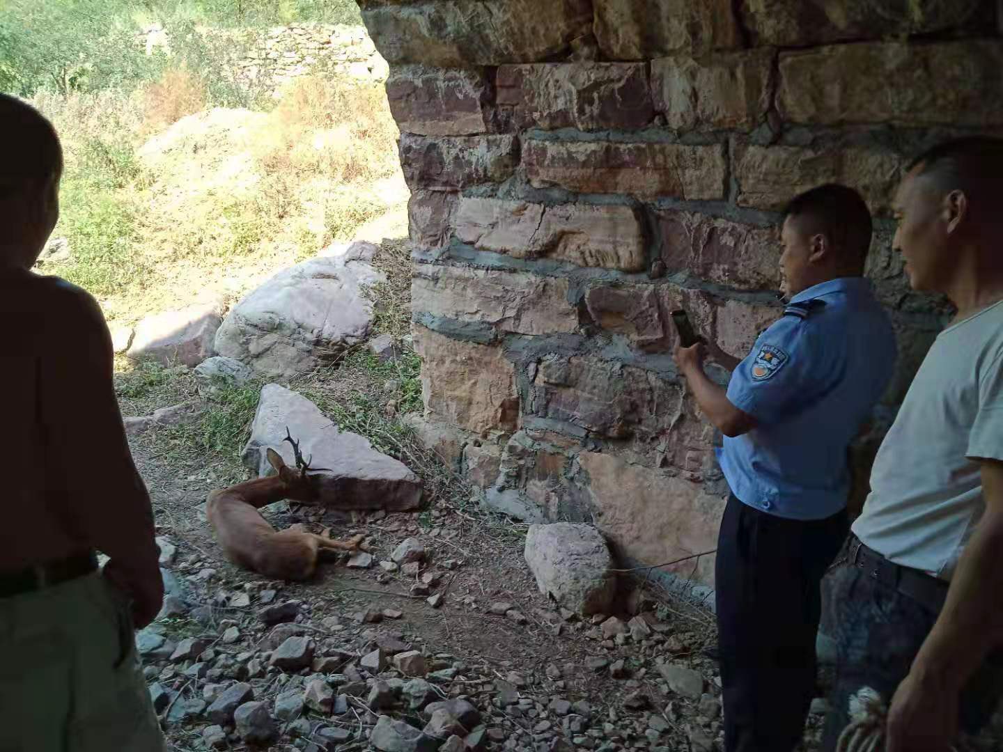 据林州市红旗渠灌区管理处回山角管理所所长李凤昌介绍,这只野狍子是职工巡渠过程中发现的,当时野狍子被困在渠中,他闻讯组织人员将其打捞出水,发现落水动物全身草黄色,头上有角,体重大约七八十斤,“之前从来没见过,后来专家鉴定,才知道是雄性野狍子,国家二级保护动物,当天就放生了。”