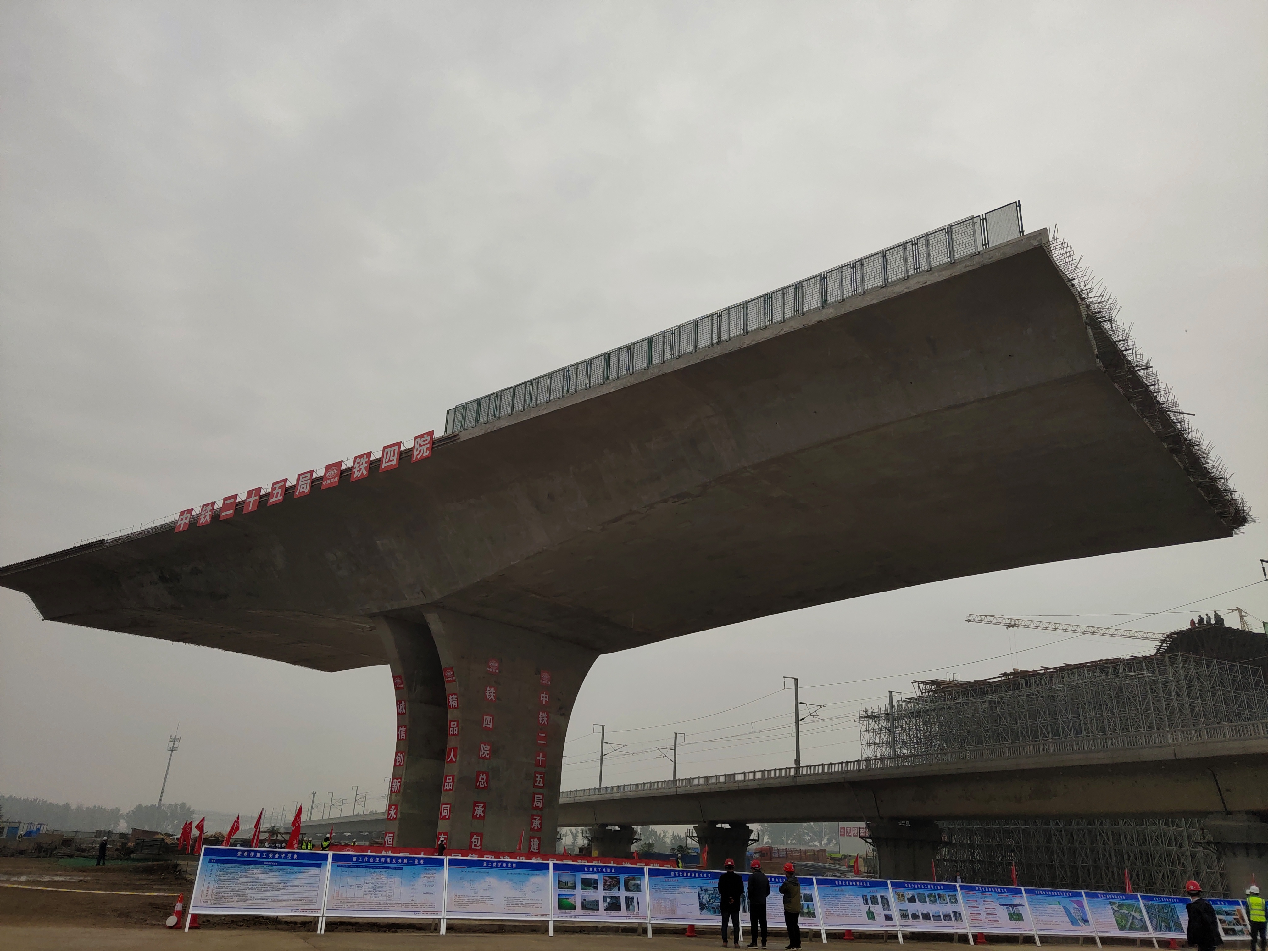历时1小时59分,跨郑万高铁转体桥成功转体