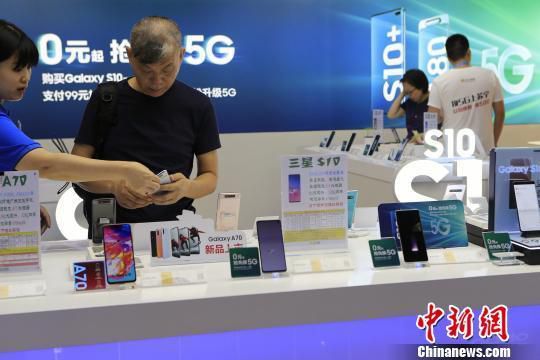 市民在体验5G手机。 殷立勤 摄