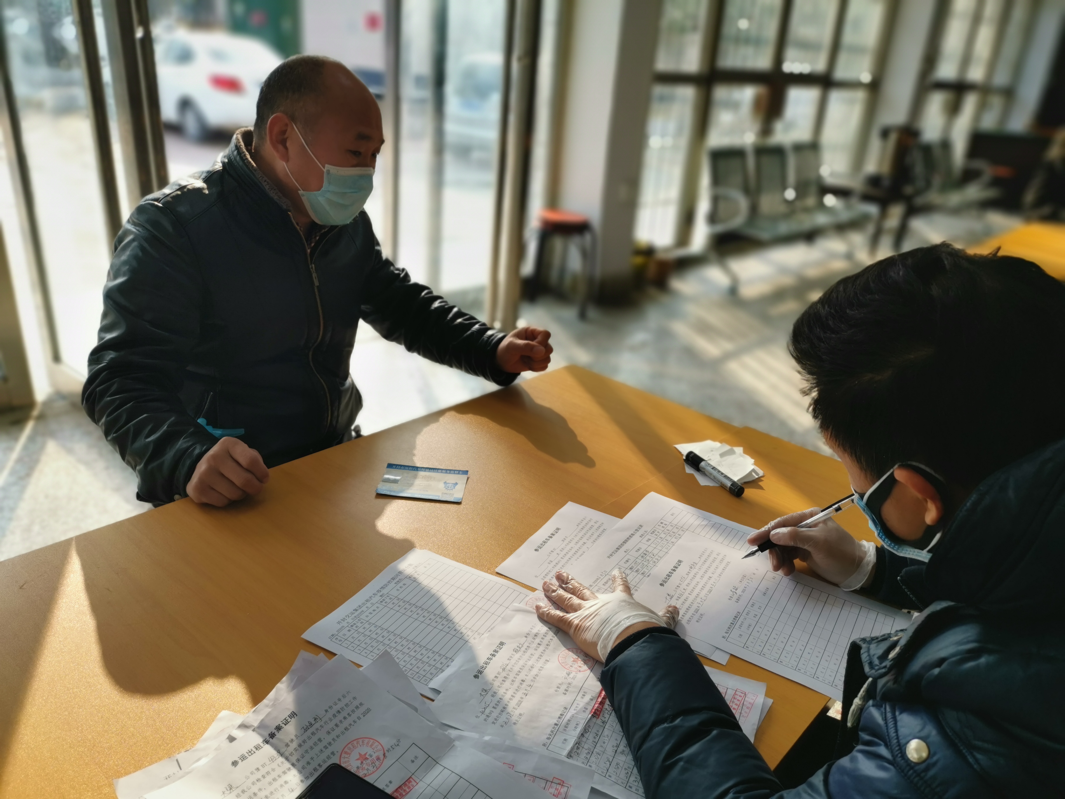 3月5日上午8点到10点,大梁公司门口的出租车接踵而至,右侧大门是入口,给的哥的姐们测量体温,没有发烧情况的,可以进入公司办理其他手续。院内工作人员为每辆出租车检查和更换登记乘客信息的二维码。的哥的姐们可以到办公室办理登记备案手续,办理完毕后,从左侧大门驶出,接受消毒后,离场上路,投入运营。整个现场秩序井然,所有的的哥的姐都按照要求佩戴口罩、按照一米线排队,避免扎堆。