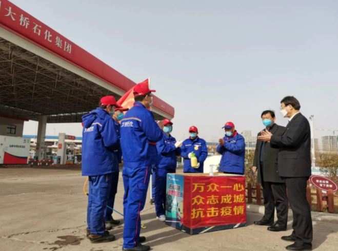 大桥石化旗下超百座加油站,遍布全省各条高速、国道和市区重要交通路口,虽然疫情期间人流车辆大幅减少,但各类负责生活生产物资运输的往来车辆仍然较多,特别是伴随2月下旬以来复工返城潮,做好疫情防控、阻止病毒传播的任务始终十分紧迫。张贵林深感责任重大,一个多月来,他既当指挥员,又当战斗员,坚持每天到下属各个加油站巡回检查,发现问题督促整改,加油鼓劲,几乎天天加班至凌晨。张贵林说:“作为企业负责人,我要对全体员工和顾客负责,作为人大代表,我要对组织和群众的信任负责!”大桥石化高度重视站内防控,高标准、严要求做好个人防控及场所防控。下属各加油站都成立了安全工作小组,配备消毒水、测温仪、洗手液等防护用品,要求各在岗员工佩戴口罩,做好个人卫生防护,上岗前须进行体温测量。严格防控措施,认真自我排查,每日定时对加油站营业区、办公区、卫生间等公共区域和用品进行消毒通风,保持经营场所干净卫生,各项防控措施落实有条不紊。