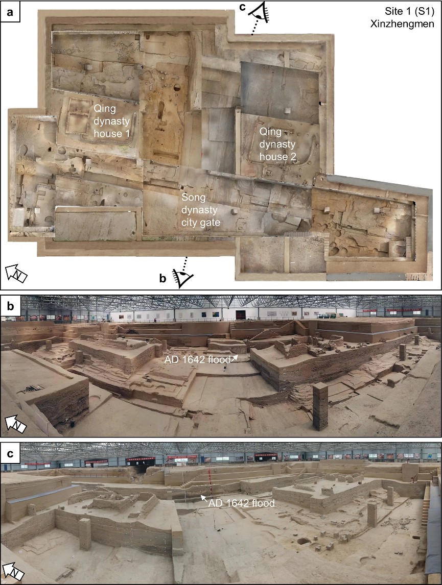 “这就表明,公元1642年洪水的大部分沉积物都沉积在开封城内。而1861洪水事件的洪水沉积大部分位于开封城外。这又进一步表明,在1642年的洪灾中,开封城墙被洪水破坏,高流量的洪水冲垮了建筑物,形成了致命的泥石流,摧毁了开封的内城,几米的淤泥和泥土覆盖了城市和居民,导致了许多人的死亡。”