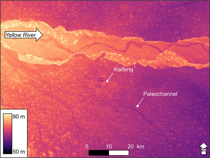 据michael storozum介绍,根据先前的研究数据,团队通过古水力学方法初步重建公元1642年洪水的河川动态,“堤坝决口后,我们估计河水水位下降了10到15米。我们认为,这些下降数据是准确的,因为开封附近黄河的平均深度约为35米,此数据是我们根据在跟黄河相似的气候条件下发现的回灌河流的宽深比估算出来的。”