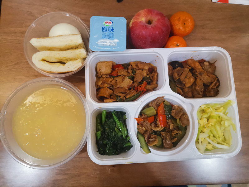 让人感到欣慰的是,隔离修养期间,援鄂医护人员每天的菜谱最贴心最精细,早餐、中餐和晚餐,每天都不重样,荤素搭配,科学膳食,均衡营养。“菜品主要突出河南特色美食和小吃,有胡辣汤、油条、水煎包、烩面、红烧小黄鱼、登封芥丝等几十种菜品。汤羹类品种也很丰富,甜咸都有,红豆薏米粥、江米麦仁花生粥、西湖牛肉羹、桂花米酒汤圆、老鸡珍菌汤等,每餐配有水果2种,保证援鄂医护人员吃得好。”郑州大学附属郑州中心医院副主任医师徐国卫说。