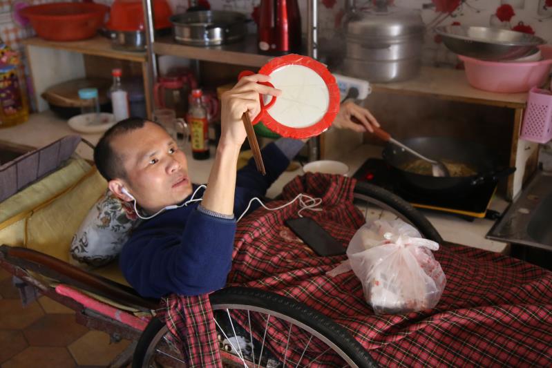 床当双脚镜子做眼 河南项城残疾“励志哥” 活得正能量有尊严