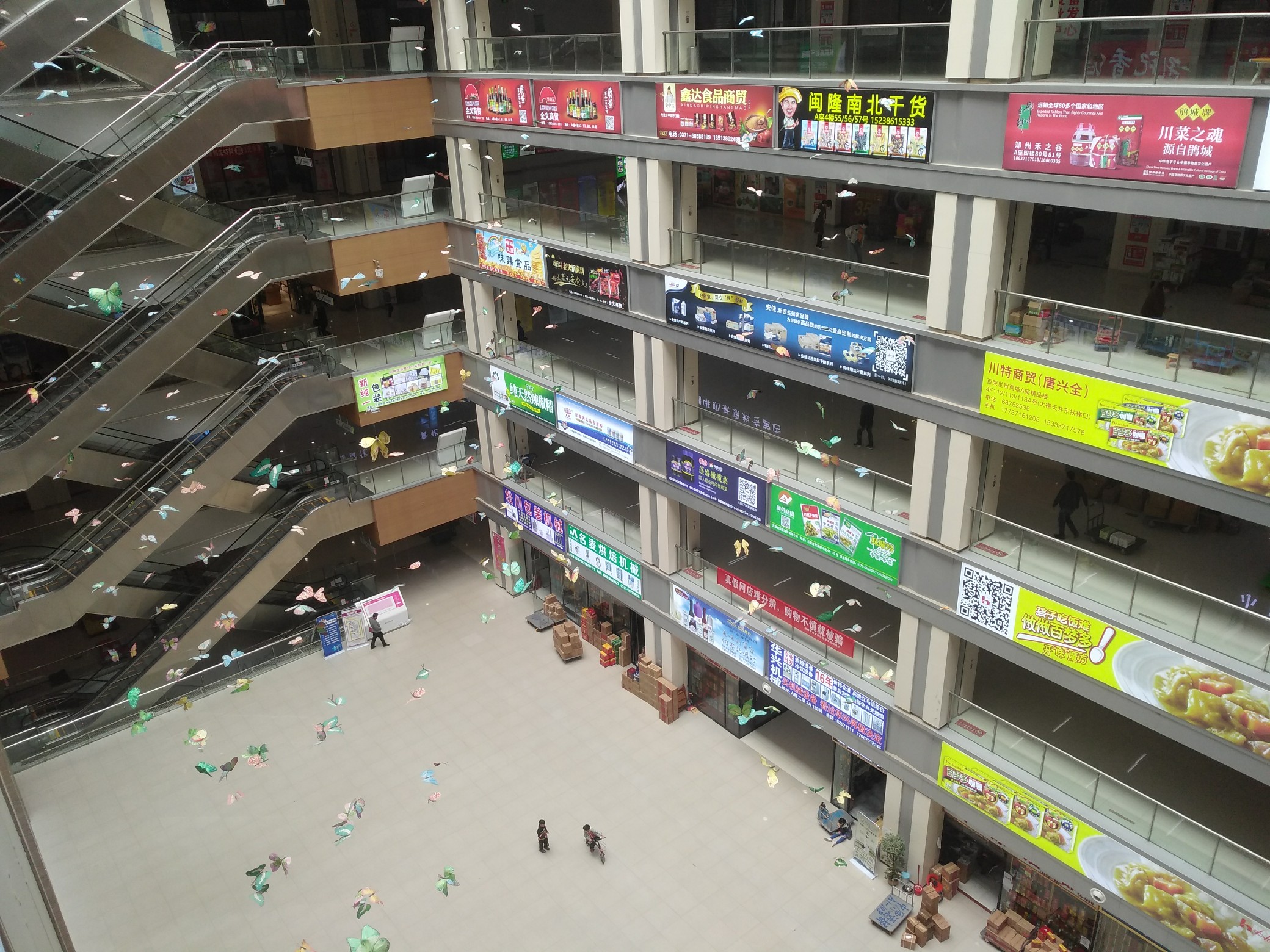 4月16日上午,记者在走访A座时看到,一楼几个孩子骑着自行车在宽敞的大厅里玩耍,走廊里上几位卖酒水的老板聚在一起闲聊,除此之外并没有看到更多的顾客。而到了二楼情况则更糟,除了有几家卖食品加工机械的商铺开着门外,其它大部分商铺都呈闭店状态。