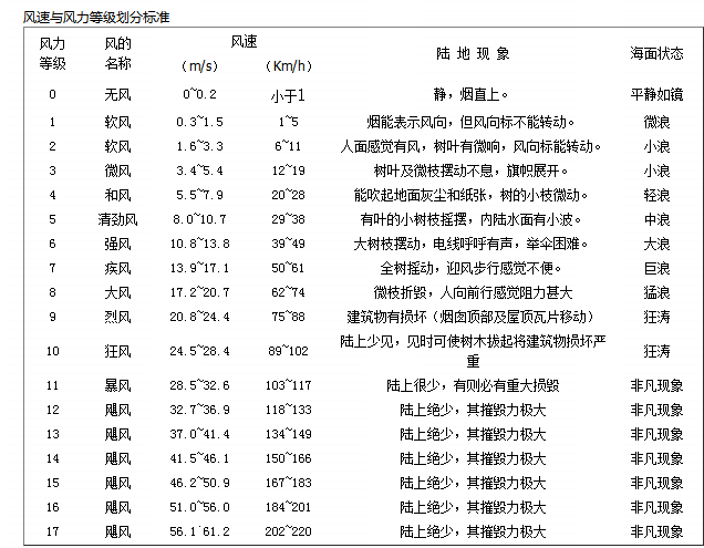 4~5级是什么概念呢?根据气象学上风速与风力等级标准划分,风速在5.5~7.9m/s为4级风,能吹起地面灰尘和纸张,树枝微动;风速在8.0~10.7m/s之间为5级风,树枝摇摆,内陆水面有小波纹。