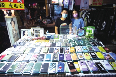 健康路夜市上,卖手机壳的摊位河南商报记者张郁/摄