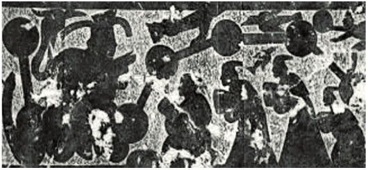 嘉祥武梁祠中前石室屋顶前坡西段后壁上刻画的一个巨大的北斗。