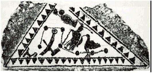 滕州出土的三角形北斗画像石。石上刻北斗,顶部出现一条大鱼。