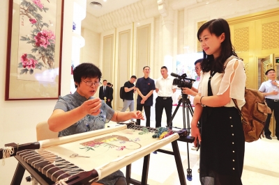 国新办举办的“庆祝新中国成立七十周年”河南专场活动现场展示汴绣技艺