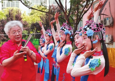 在全省大中小学校,《穆桂英挂帅》《花木兰》《红灯记》等戏剧经典在校园里唱响,李树建、申小梅等戏剧名家将非遗项目豫剧、越调等最具代表性的地方戏剧艺术送到孩子们身边;