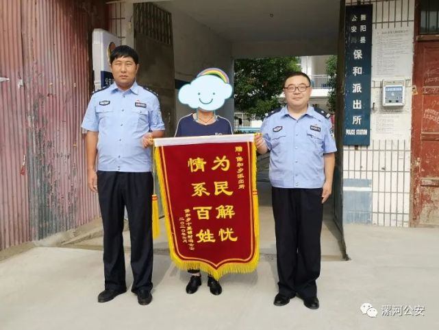 6月19日上午,舞阳县保和乡某村的冯女士将一面绣有“为民解忧,情系百姓”的锦旗送到舞阳县公安局保和派出所民警手中,感谢民警帮其追回被骗钱款。