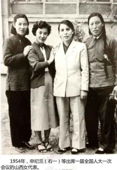 申纪兰一直珍藏着一张1954年第一届全国人大一次会议山西代表团的四位女代表的合影,照片从左到右,分别是刘胡兰的母亲胡文秀、歌唱家郭兰英、代表李辉,最右边是申纪兰。