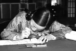 1954年,出席第一届全国人代会的申纪兰在报到表上签字