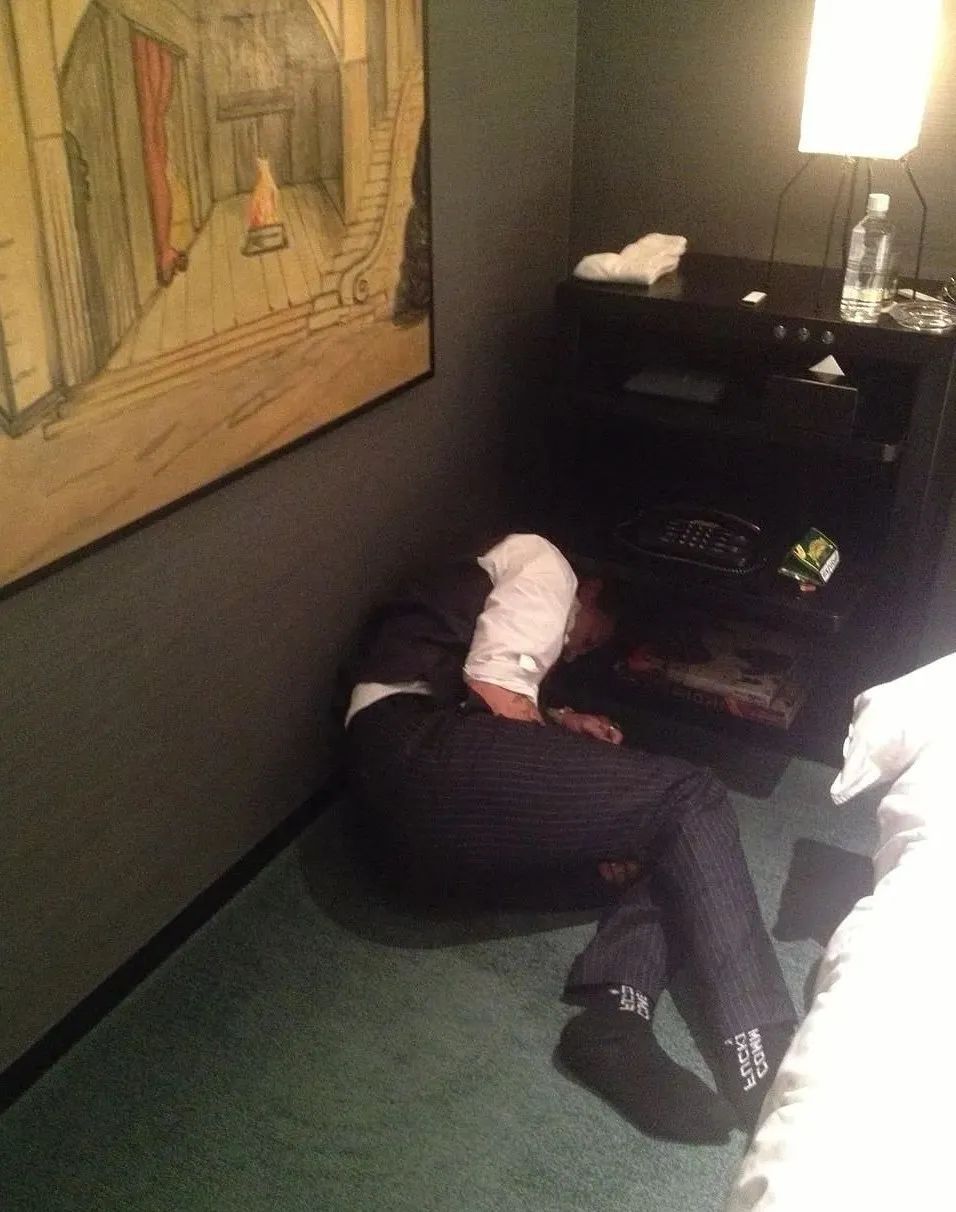 同时,艾梅伯还向法庭提供了一张德普(疑似吸毒或药物过量后)昏倒在酒店床旁的照片: