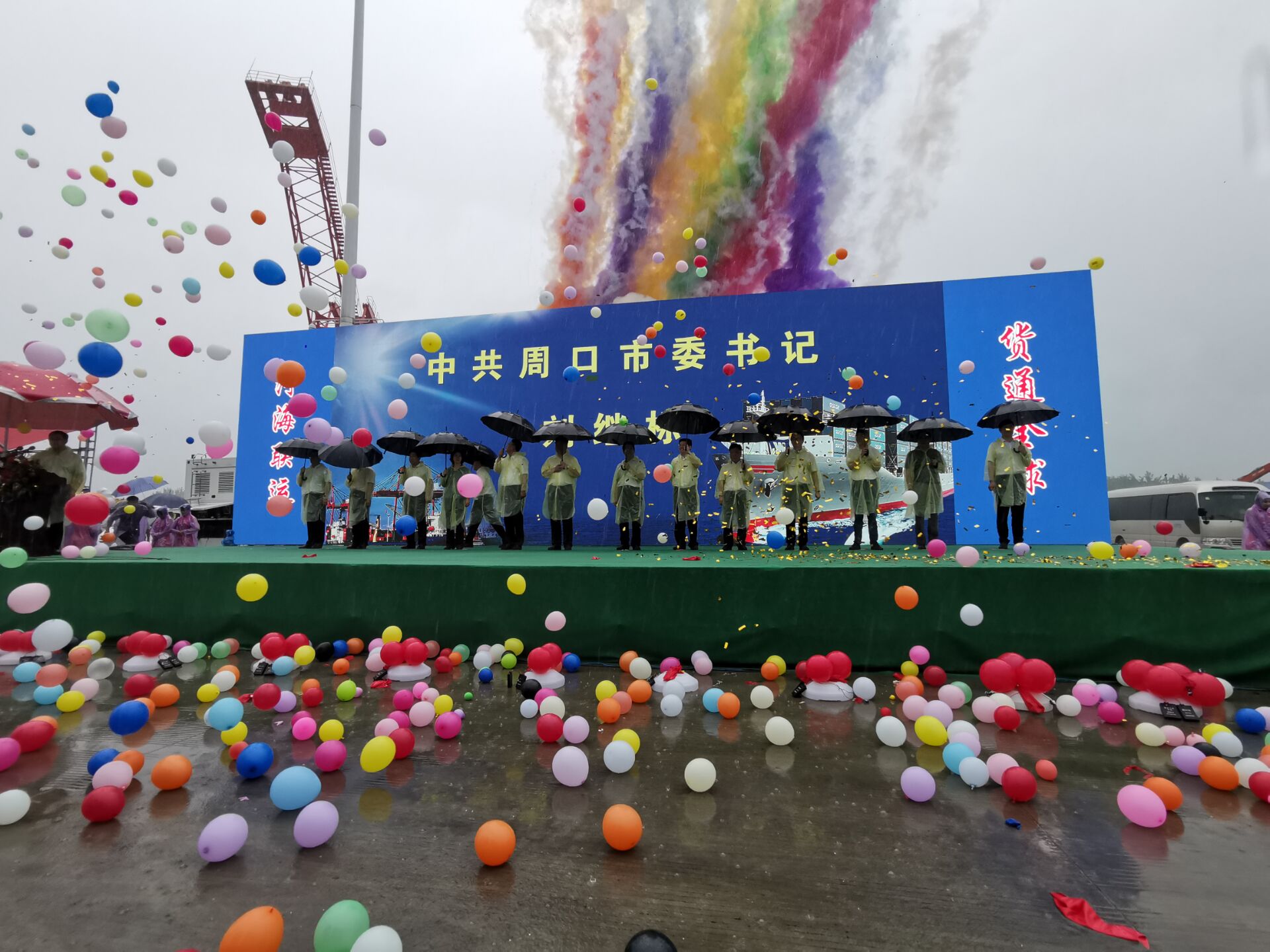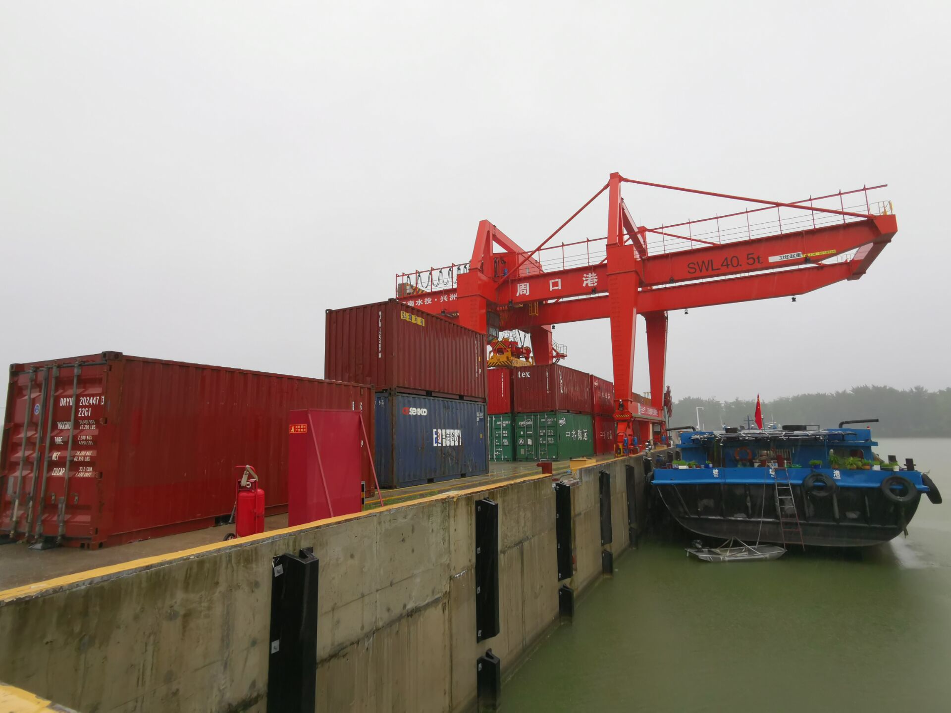 雨中的沙颍河周口段薄雾似纱,涟漪点点。7月22日上午9时许,随着周口市委书记、市人大常委会主任刘继标宣布开航,两艘满载集装箱的货船拉响汽笛,加足马力,从周口中心港码头出发,一路向东朝黄海方向驶去。这标志着周口中心港至连云港港集装箱点对点精品航线正式开航。从此,周口直接联通“海上丝绸之路”,货物出海一站可达。