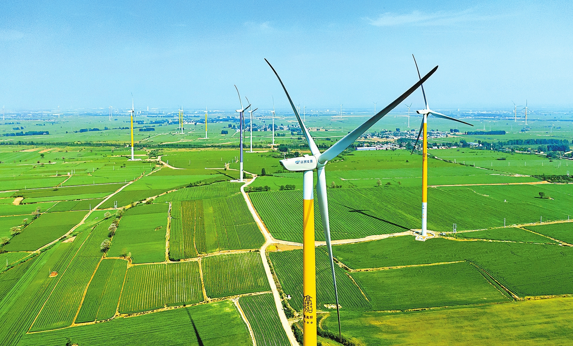 汤阴县西南部的田野间,彩色的大型风机林立(8月18日摄)。冀晓静摄