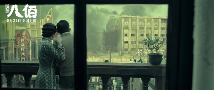 等光、等太阳,是《八佰》拍摄的常态。在升旗的那场戏,谢晋元团附走到墙边,向大家敬礼,这一个敬礼的片段,就横跨了三个月。大家每天排演,看天气预报,等待合适的机会,“必须要跟三个月前一样,时间卡着几点几分,走到同样的位置、同样的风、同样的镜头出来的阳光光感一样,才拍”。
