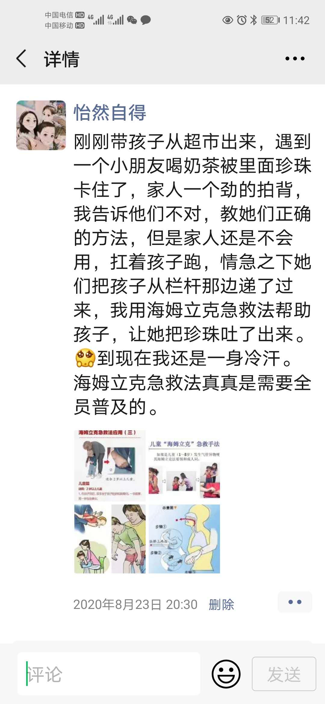 “快把孩子放下,你从背后环抱住孩子,握拳用力挤压她的上腹部中间。”郭华连忙隔着栅栏,指导孩子父亲正确的救援方法。“她爸爸尝试了一次,孩子还是没吐出来。”郭华说,救子心切,年轻男子慌乱中不得要领。“把孩子给我!”郭华告诉记者,为了抢“黄金救援时刻”,她隔着栅栏接过女孩抱在怀里,右手握拳放在其腹部,用力挤压了三次四,小女孩终于吐出了一颗软烂的“珍珠”,停止了呛咳气息回稳。而此时,距离郭华发现女童仅过去了约2分钟。