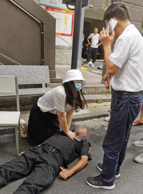 葛先生说,事情发生在9月2日早上。“大概是8点的样子,小区一名保安突发疾病,一位可能是医务人员的小姐姐第一时间主动给保安师傅进行了体外心肺复苏和人工呼吸,直到120来,累到体力不支,站都站不起来了。”