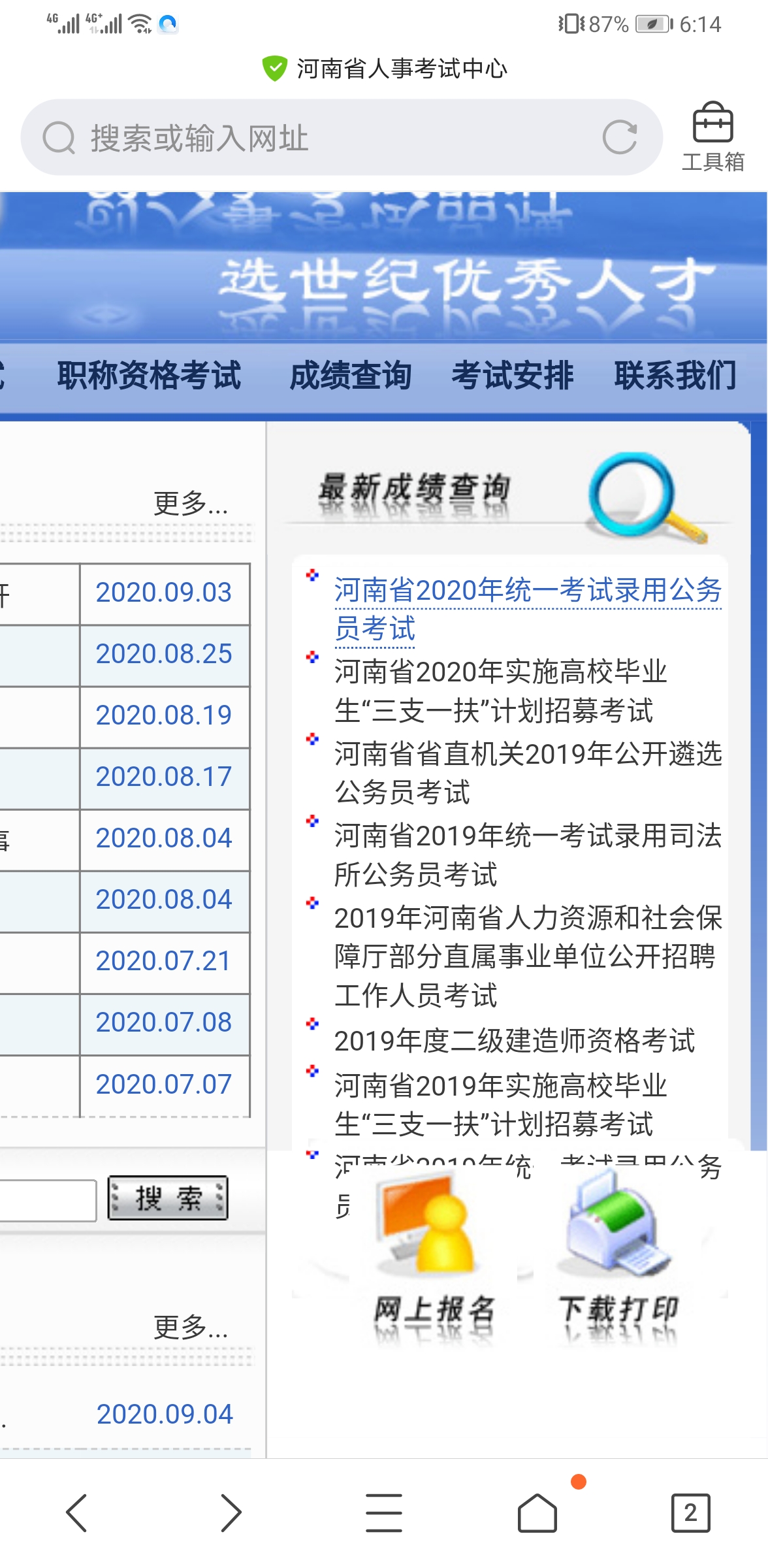 17日清晨6点,记者点开河南省人事考试中心官网,进行了查分实测,6次跳转查分系统,仅有一次成功。