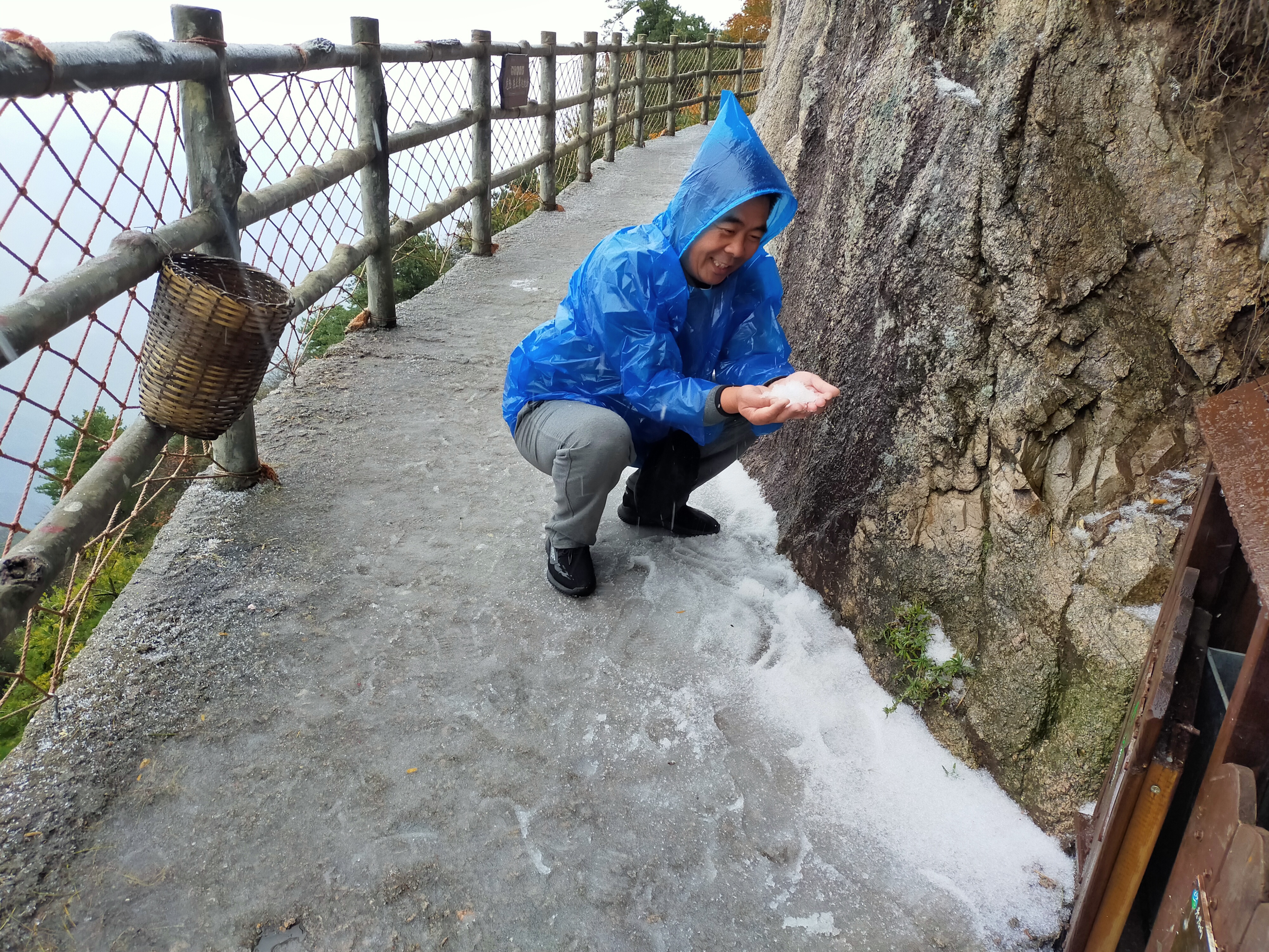 “从山脚到山顶,几乎经历了四季变幻,这个感受很奇妙。”从许昌来的杨女士表示,她和朋友们一路走一路拍,顾不上冷,直接捧起一把雪,跟初雪来一次“亲密接触”。