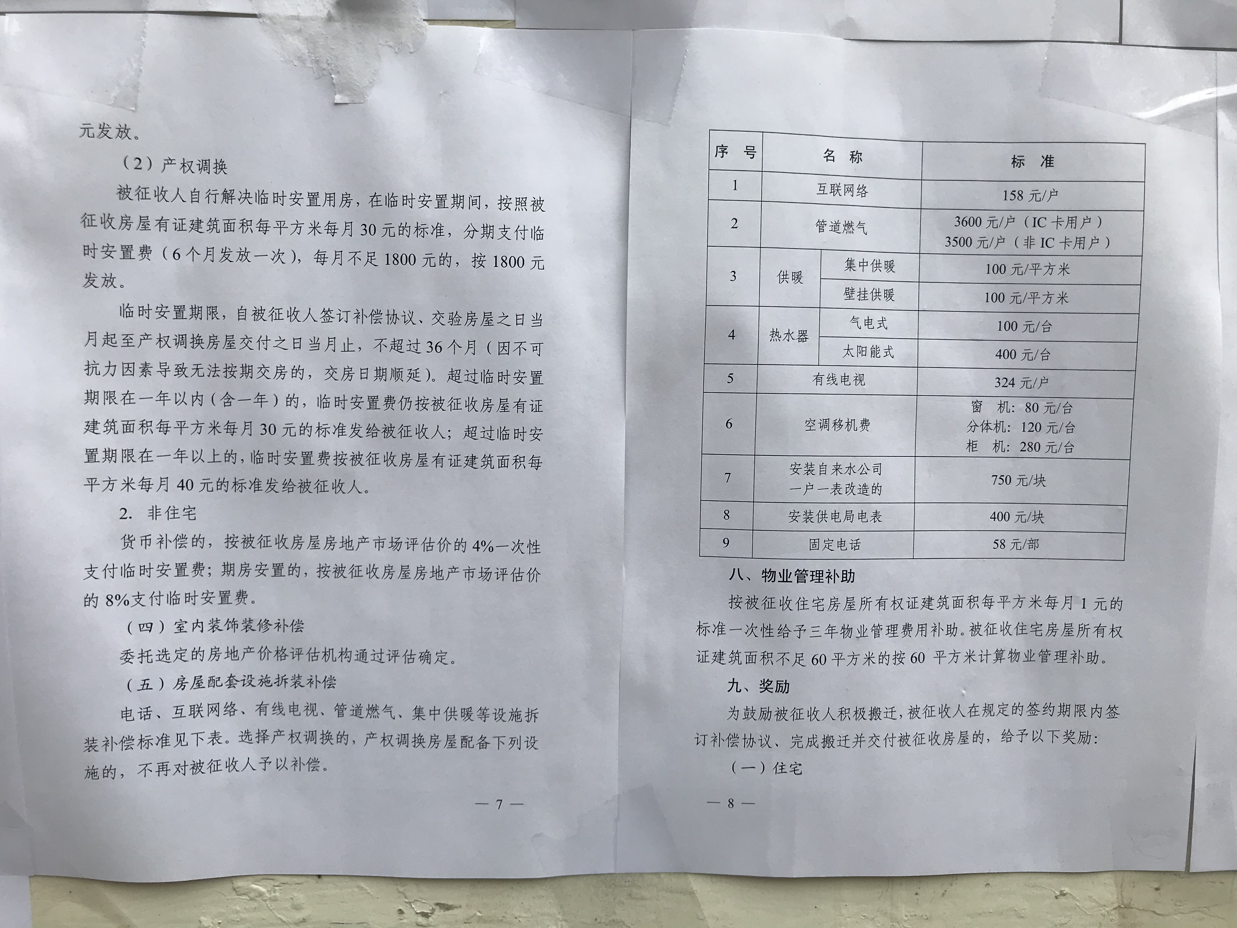 在《方案》中,详细说明了补偿内容和标准。对于申请货币补偿的居民,按被征收房屋的房地产市场评估价上浮30%给予补偿。以张建民家为例,评估公司给他家房子评估的价格每平方米约为1.3万元左右,上浮三成,每平约在1.7万元左右,再加上过渡费和其它补偿,可以得到108万元的补偿款。