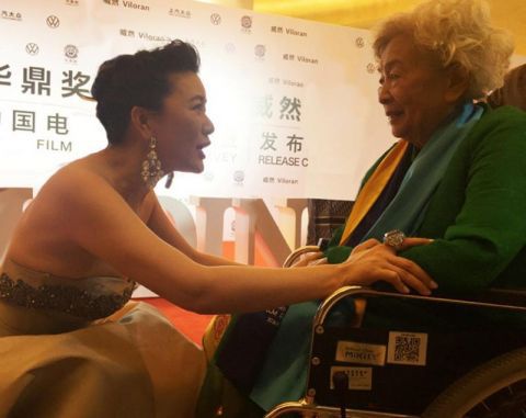 颁奖礼结束,田海蓉俯下身姿牵手85岁高龄的谢芳老师,祝贺谢芳老师荣获华鼎奖终身成就奖,也诚挚感谢曾在《花灯满城》中默契合作与鼎立支持。