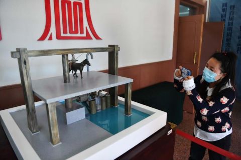 在这批展品中,一套“驴拉磨”的模型格外抢眼。明末清初时期的中国最初以“水法”一词作为引水机械设施的称谓,后来亦专指喷泉。“水法”源自欧洲,由传教士传至中国,因此,又称“西洋水法”。现场展出的“驴拉磨”模型是圆明三园众多水法景观中,海晏堂的畜力驱动引水机械设施。据现场工作人员介绍,在圆明园盛时,清代帝后就是用这套设备欣赏喷泉水景,该模型的亮相,首次将清代使用机械原理进行的水力工程展示在世人面前。