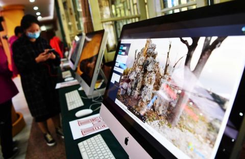 在首届高校研究成果展上,一批研究成果精品首次亮相圆明园管理处多功能厅。北青-北京头条记者在现场看到,北京大学通过对圆明园远瀛观、大水法的全景拍摄和三维数据重建,形成虚拟三维影像进行视频展示,观赏者可以互动浏览,获得身临其境的感受。
