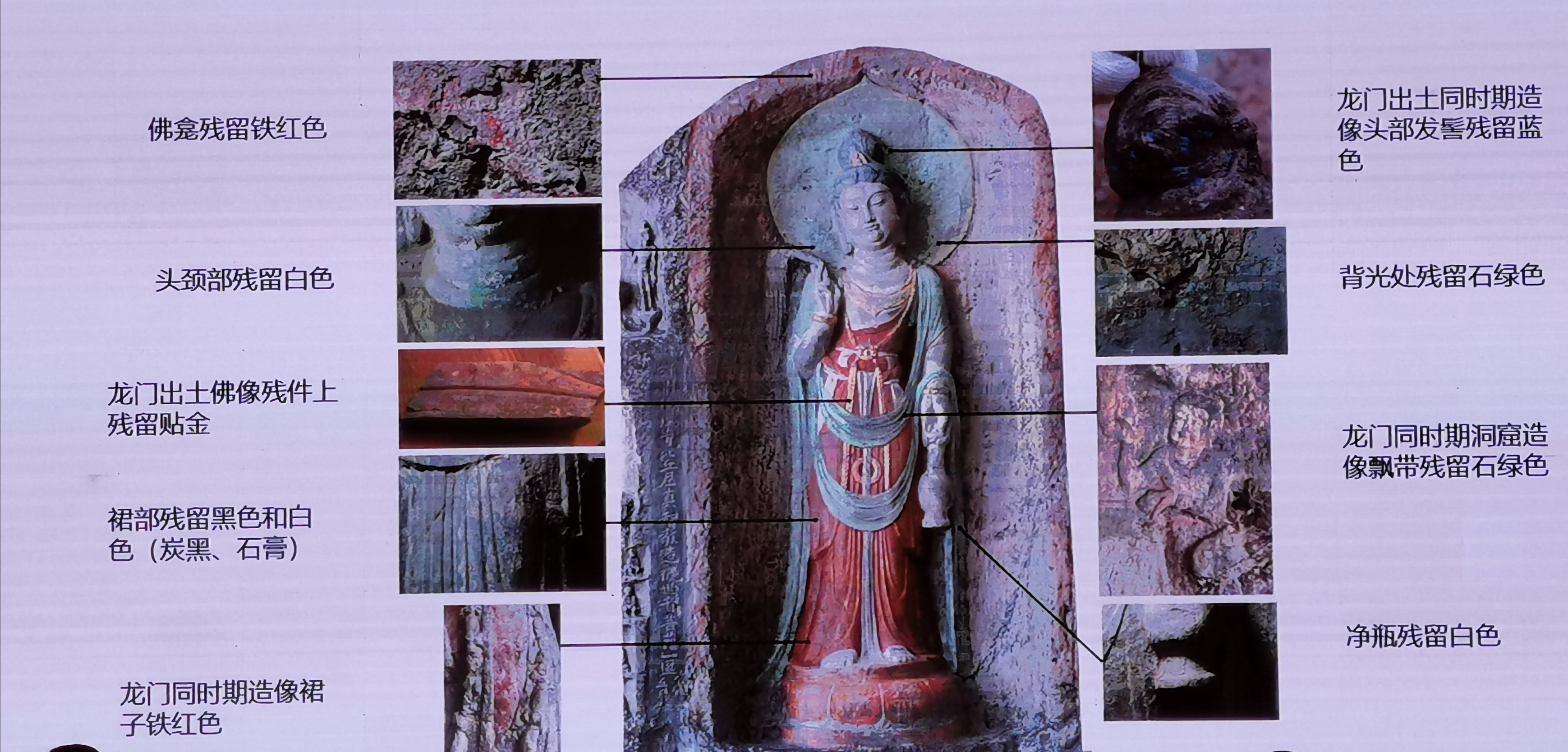 值得庆幸的是,百年之前曾有学者拍下了完整面貌,为后世留下珍贵图像资料。龙门石窟研究院采用数字技术对石窟文物进行虚拟修复,使得这尊观世音造像回归历史样貌。除了造型恢复,彩绘图案也通过科学方式再现芳华。