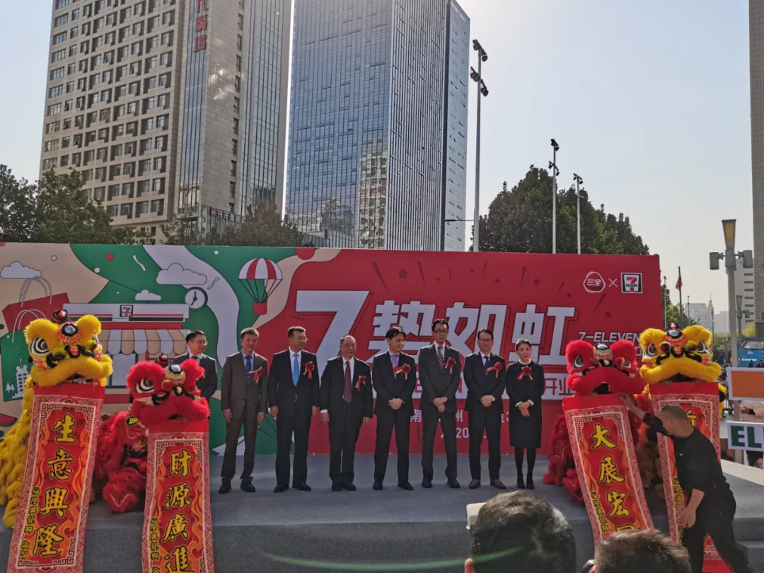 7-ELEVEn日本株式会社执行董事、柒一拾壹(中国)投资有限公司董事长兼总经理内田慎治及管理层,三全食品创始人陈泽民、董事长陈南,招商银行郑州分行相关负责人出席首店开业典礼并剪彩。7-ELEVEn日本株式会社社长永松文彦为7-ELEVEn河南首店发来了视频致辞,对开业表示了祝贺。