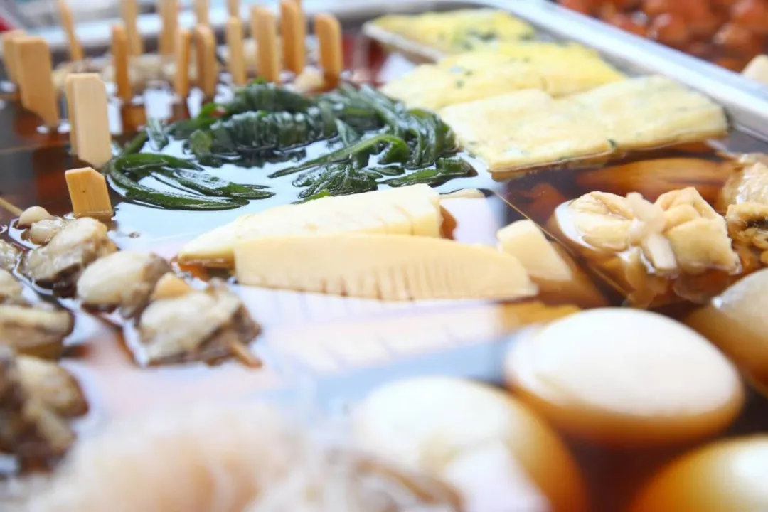 速食和鲜食是7-ELEVEn便利店的一大特色,进门显眼的位置,摆着关东煮、包子、炸品等速食类食品,以及便当、饭团、寿司等日系食物。货架的优势陈列位,日本进口商品和7S自有品牌商品也特别显眼。
