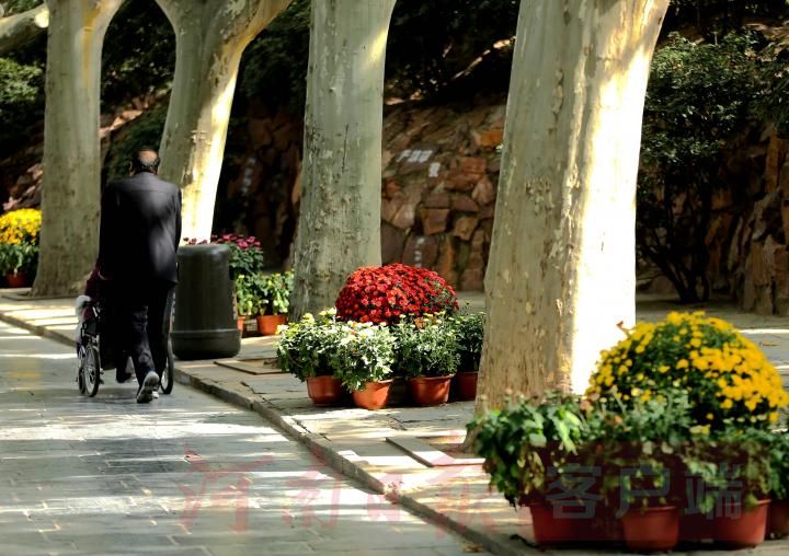 悬铃木下,秀丽的假山石错落连绵,点缀其间的绿植染了各色的秋颜,层叠的菊花遍野铺撒,串联出一帧帧秋日林间山野影像……