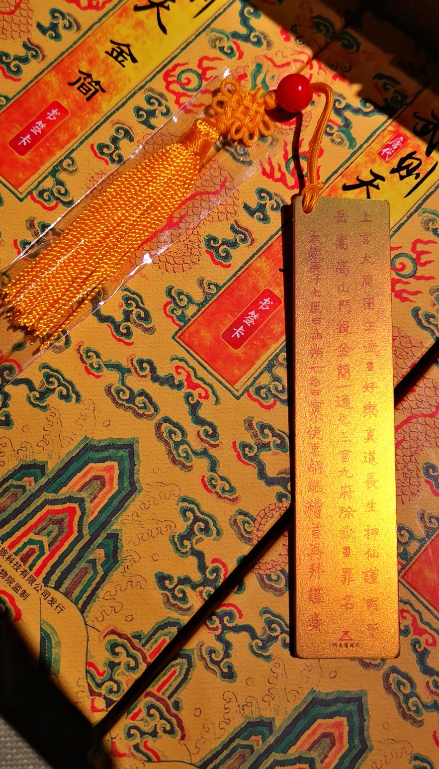 在一楼文创展区,工作人员自豪地说,“我们的产品已经包括了衣食住行”。正当记者纳闷“行”在哪儿时,发现了一枚外形神似武曌金简的类似书签的产品。