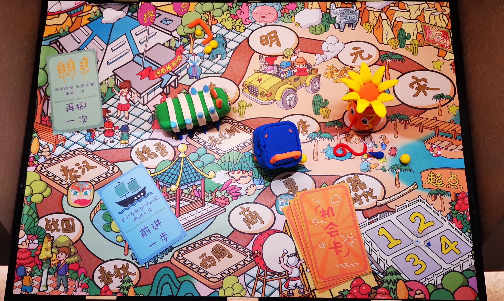 记者在现场发现一套类似飞行棋的桌游产品,工作人员介绍说:“这是历史游戏棋,孩子们在玩的过程中能够熟知中原的朝代更迭,在寓教于乐中学习了历史,一举两得。”