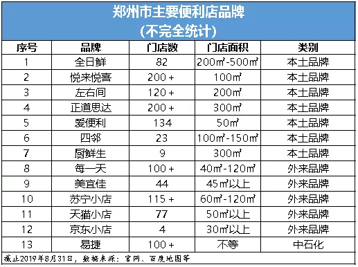 有媒体不完全统计,目前郑州约有便利店3000家,主要连锁便利店品牌13家。
