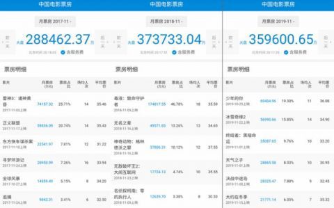 在失去好莱坞大片之后,11月的票房任务就落到了国产新片的头上。实际上,过去几年一些国产片正是凭借口碑在这个档期实现逆袭,例如2018年的《无名之辈》,以及2019年10月底上映的《少年的你》,曾力压《冰雪奇缘2》成为了11月的票房冠军。