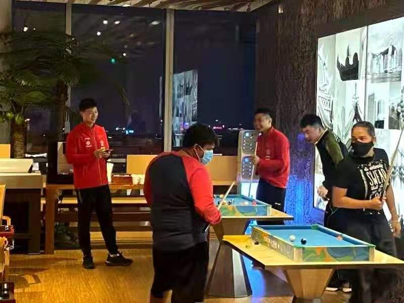从到达到离开,运动员们要在封闭的环境下待上一周左右的时间。如何在这种情况下让大家的业余生活尽可能丰富,接待人员也是做足了工作。在38楼的餐厅,工作人员专门辟出了一小块区域,设置了桌游、飞镖等小游戏,还准备了筷子、折扇、泥塑、四扇屏、中国结等小礼品。小游戏让运动员们在用餐之后放松身心,富于中国特色的小礼品更是引起了外国运动员的极大兴趣。
