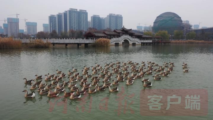 “没想到咱们市区也能看到鸿雁。我听朋友说的,周末了就带孩子过来看看,不光大人高兴,孩子们更是兴奋,还从没见过这种鸟呢。这算是它们送给市民冬天里的小惊喜吧。”商丘市民王喜梅高兴地说。