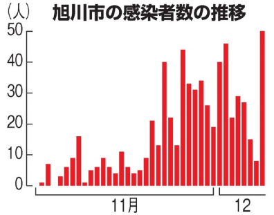 近期,旭川市的医疗机构等地暴发了至少8起聚集型感染事件,导致12月以来的确诊病例数激增。